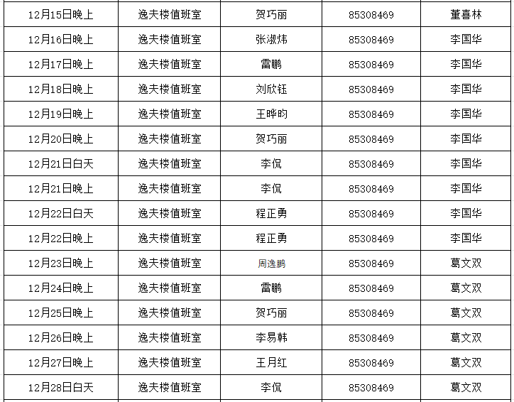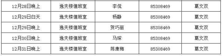 4.值班时间:上午:8:30—12:00 下午:14:30—17:30 晚上:17:30—21:30。