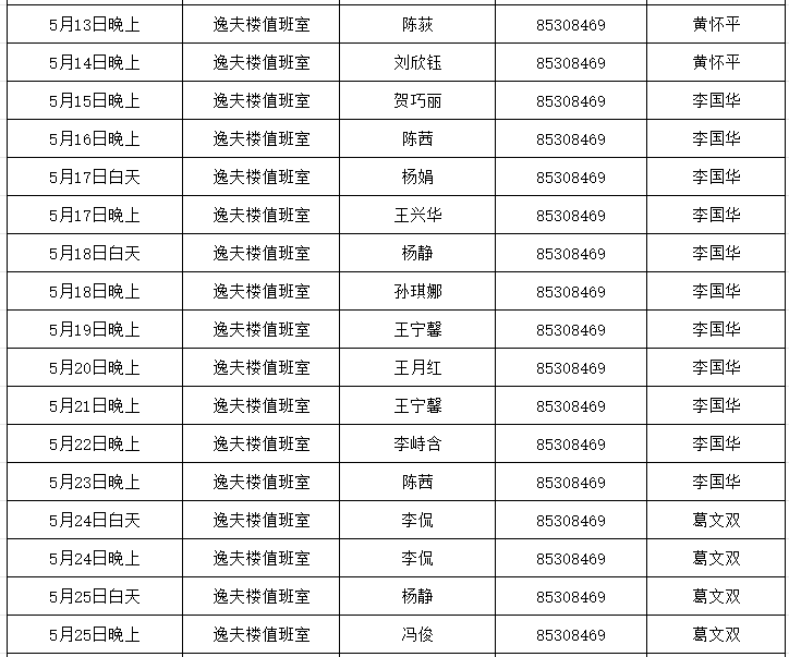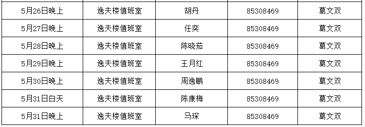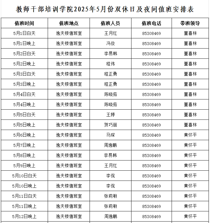 云顶赌场 2025年5月份双休日及夜间值班安排表