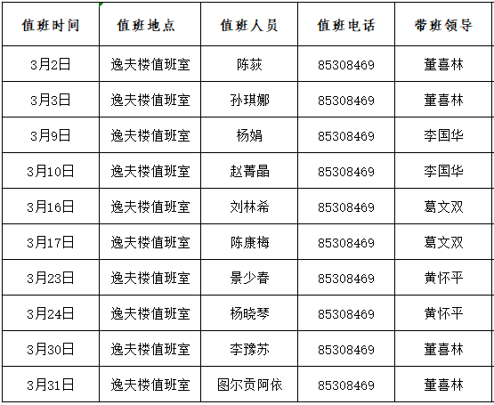 4.双休日值班时间:上午:8:00—12:00 ;下午14:30—17:30。