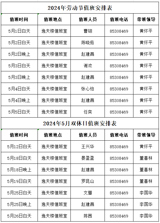 4.值班时间:上午:8:30—12:00 下午:14:30—5:30。