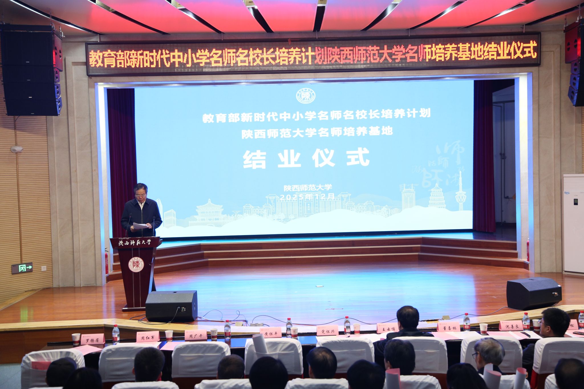 董喜林代表培养基地汇报培养情况。他表示学校高度重视“双名计划”培养任务,整合多部门优质资源,创新构建“理论导师+实践导师+课题导师””三导师制,探索形成“STEP”分层进阶培养模式,着力培育教育家型教师,取得丰硕成果。据统计,基地14位学员累计出版个人专著14部,主持省级以上课题20余项,发表论文50余篇;依托名师工作室培育骨干教师数百名,送教帮扶惠及超十万人次;学员中涌现出2025年全国“最美教师”、劳动模范、领军人才等先进典型。董喜林表示,基地将持续深化成果凝练与品牌建设,为教育强国建设贡献“陕师力量”。