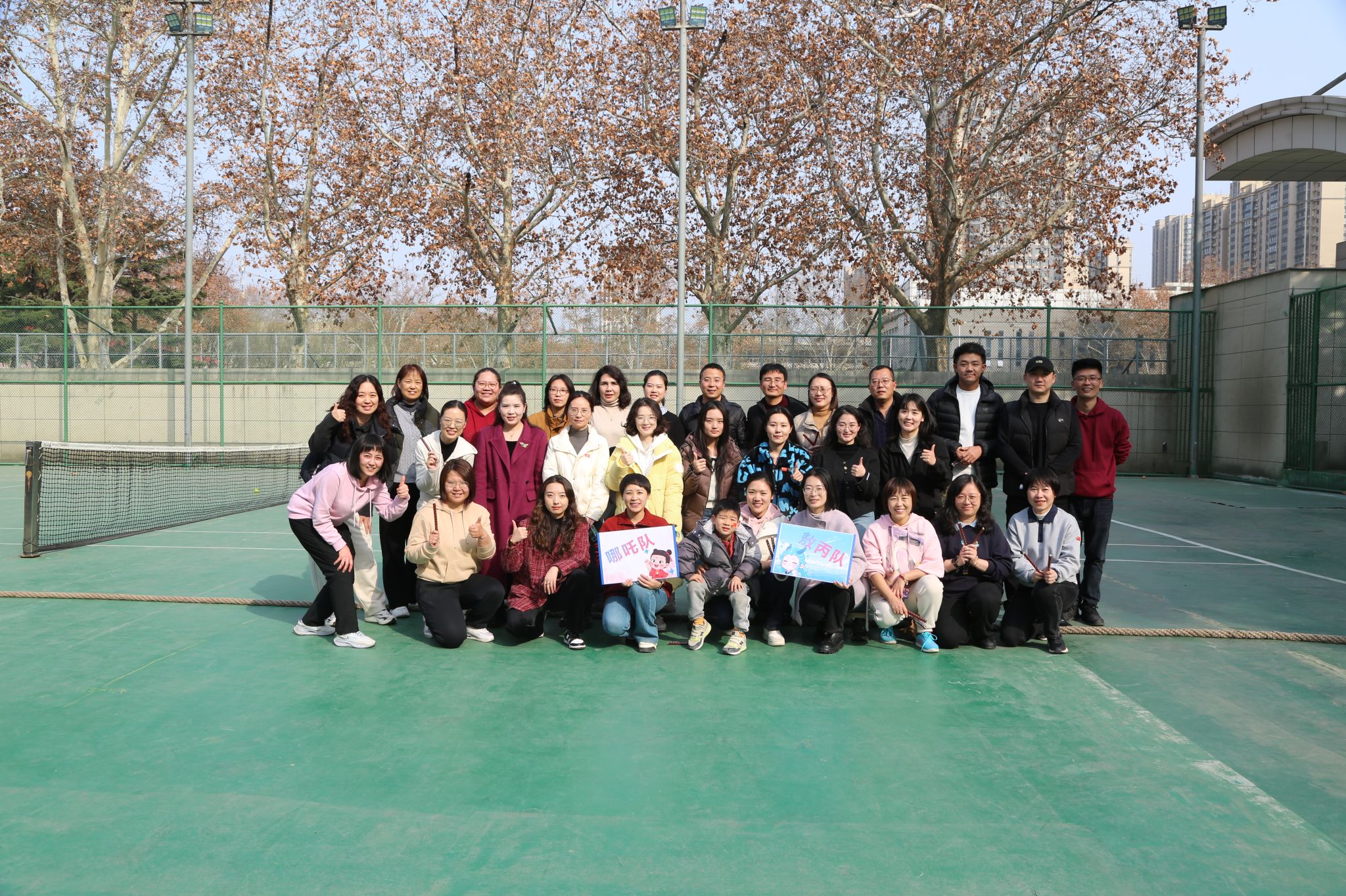 工会在网球场举办“花开三月 绳彩飞扬”职工绳类趣味比赛活动,全体教职工热情参与,共度欢乐时光。
