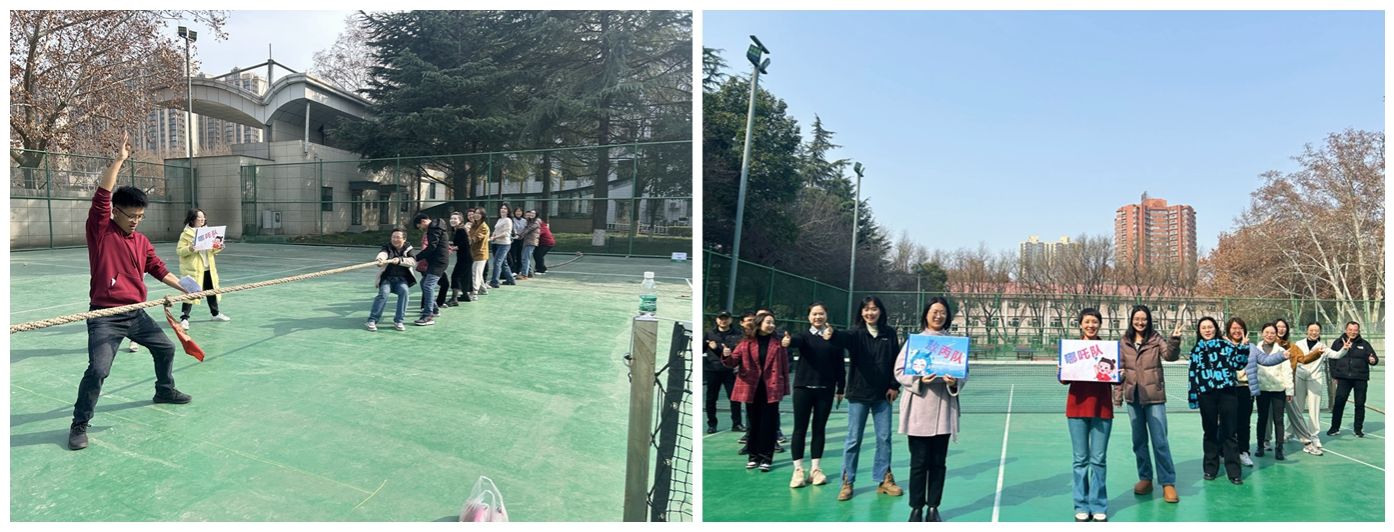 活动以团体赛形式展开,各部门共组成2支队伍,分别进行跳大绳和拔河比赛。随着裁判一声哨响,长绳在空中划出优美弧线,参赛教职工们身姿轻盈、配合默契,跳跃声与助威声此起彼伏。绳子甩走的是压力,跃起的是对生活的热望——这就是教育人的春天!