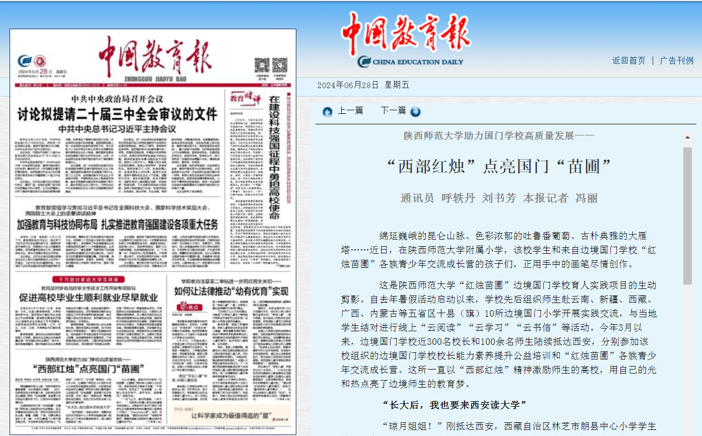 助力国门学校高质量发展——“西部红烛”点亮国门“苗圃”》。文章从“长大后,我也要来西安读大学”“我们要像石榴籽一样紧紧抱在一起”“‘量身定制’的国门学校校长培训”等三个生动侧面切入,以今年3月以来边境国门学校近300名校长和100余名师生来西安参加云顶赌场