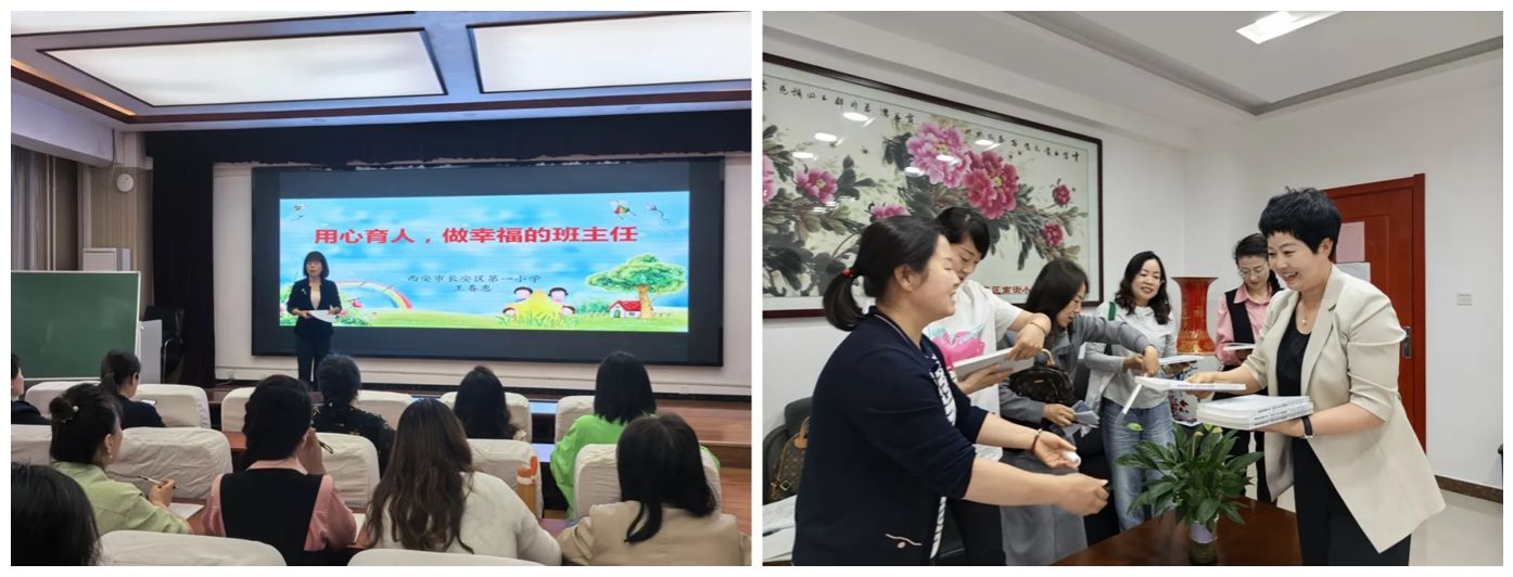 教育学部郭瑞迎副教授、田家炳中学李萌老师就教学成果奖申报和师生关系处理等内容开展专题教学。同时,分别在西安华山中学、长安区第一小学开展为期4天的跟岗研修。跟岗期间为参训老师们分学段分年级匹配在校指导老师,参训老师深入课堂听课、观摩班级日常管理情况、参与主题班会活动等,通过同行交流与观摩学习,进一步提炼班级管理先进经验,深化对班主任工作的反思。