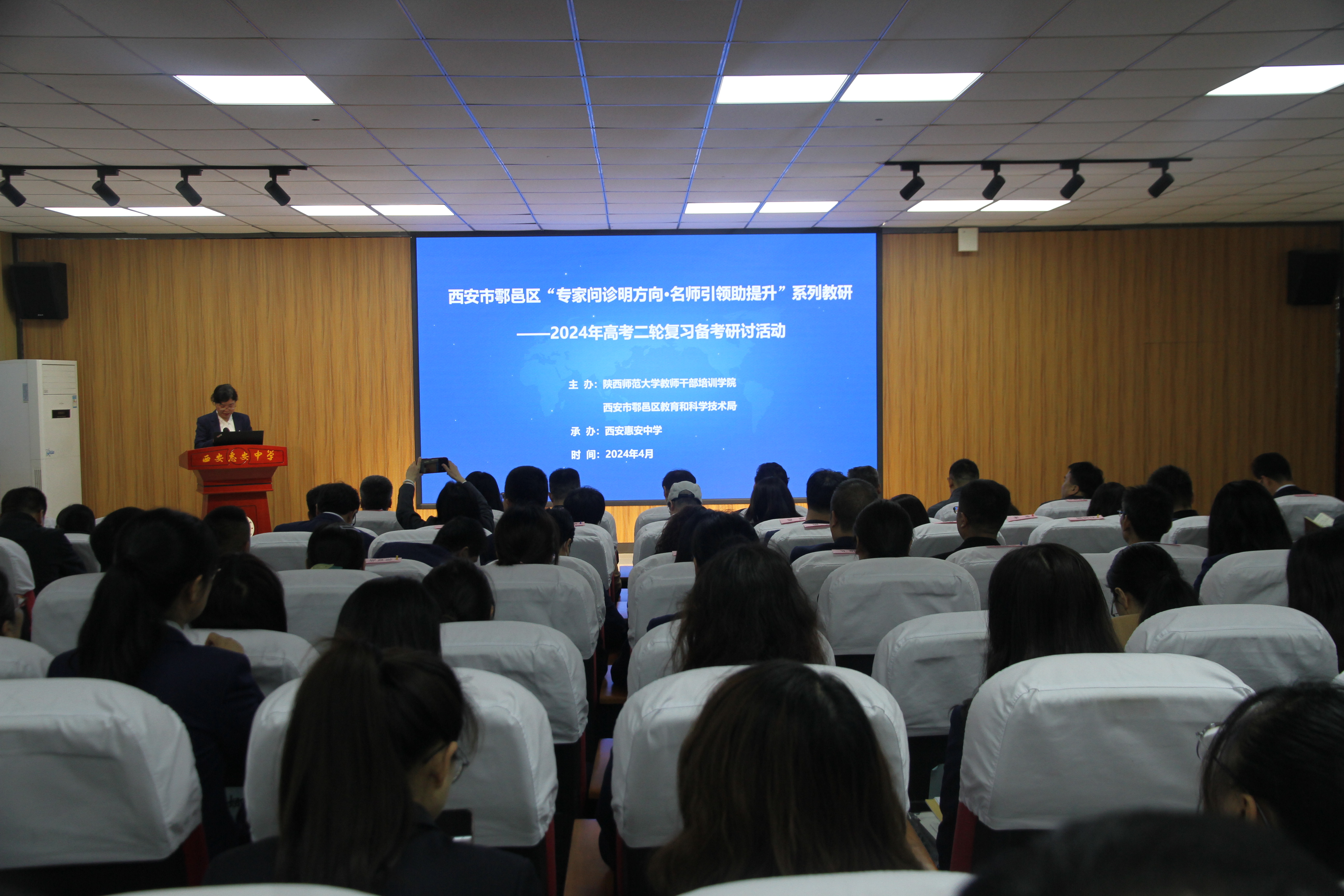 主办的“城乡教师学习共同体—名师引领行动”2024年高考复习备考研讨活动在西安市惠安中学举办。本次活动由第五批陕西省基础教育教学名师培养对象龙正祥、王小军、王增运、王美智、訾晓彬、席燕、张冰、李凯、陆国琴等九个名师工作室联合开展,主题为“以学为中心的课堂教学研究”“城乡教师学习共同体”项目县——洋县和志丹县的20位种子教师以及鄠邑区280余名高中骨干教师参加。